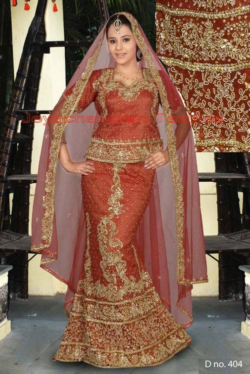There has been a very minor modification in the present day Lehenga Choli . The designs are still dominated by the Mughal era.The dress consists of a customary long skirt called theLehenga, Choli or the blouse accompanied by a long heavily embroidered dupatta. The fabrics used are mostly silk and brocade. The material of the dupatta is presently being made of silk, linen and sometimes chiffon.